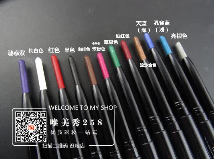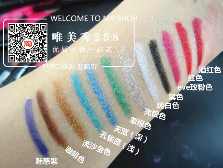 此款眼线笔属于浅色系的,流沙金 闪银色 珠光白 薰衣草紫 浅绿色的 颜色画出来就是很浅的 打底的话浅浅的一层就很好看的,需要颜色深点可以多描几笔,这不是不上色 是它本身颜色是属于浅色系 黑色 棕色 红色的 颜色就相对那些深一点 画在手上都是有颜色的 只是深浅而已,不是什么不上色 能接受就买 不要动不动说不上色的,我都试色好几遍了 也没出现画不出来的 颜色深浅问题的 请理性购物 谢谢