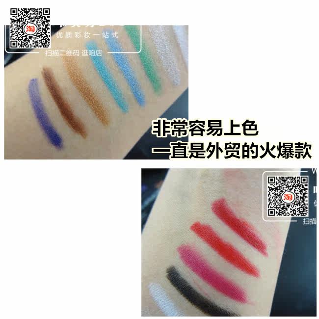 关于最近出现客户说不上色的问题,我在这里说明下,为什么在手上能画 在眼部就画不了的 手部皮肤我们知道不怎么出油所以一画就很上色,眼部是容易出油的 你怎么画都会画不上,化妆前用吸油纸清理下 在画的 就不会出现这种情况,如果你连这些清理步骤都没有做 就说不上色的我建议你还别买了,你用什么眼线笔都会不上色的,