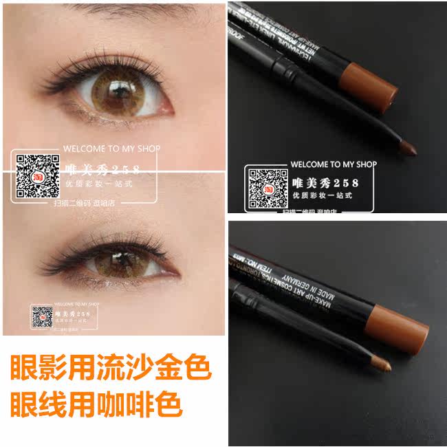 终于拿到这款笔笔的货了,呵呵,好开心啊,用这个DD能让MM的眼睛更加电力十足哦!女人我最大推荐台湾MM最爱用上色强的珠光眼线笔(眼影笔)大眼立现!!!!! 日本台湾正流行,开眼头妆……让你有好人缘哟……在下眼头上面轻轻的涂一点就OK咯……让你的眼睛更大更开拓……