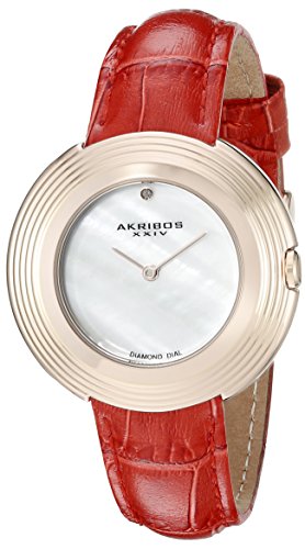 -. Binding : Watch -. Brand : Akribos XXIV -. Color : Red/Rose/Gold/MOP/Mother-of-Pearl -. Department : womens -. EAN : 0848572072380 -. Feature : White mother of pearl dial with two hand movement / Genuine diamond hour marker and rose gold tone baton style hour and minute hands / Polished rose gold tone alloy case with multi-step design bezel and square grain red alligator embossed and padded genuine leather strap / Japanese quartz movement with analog display / Water-resistant to 30 M (100 feet) -. Label : TWI Watches, LLC -. Manufacturer : TWI Watches, LLC -. Model : AK876RD -. MPN : AK876RD -. PackageQuantity : 1 -. PartNumber : AK876RD -. ProductGroup : Watch -. ProductTypeName : WATCH -. Publisher : TWI Watches, LLC -. Studio : TWI Watches, LLC -. Title : Akribos XXIV Women's AK876RD Mother-of-Pearl Dial Rose Tone & Red Leather Strap Watch -. UPC : 848572072380