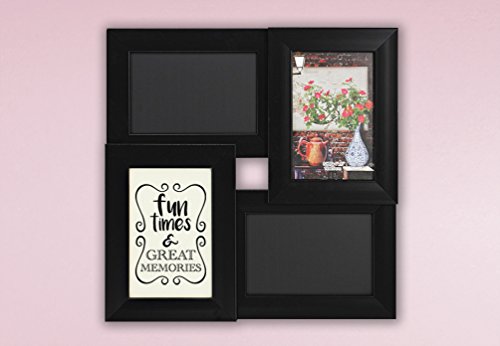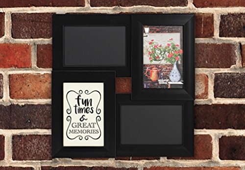 Family Tree Frame Fun Times & Memories Chalkboard Picture Frame Black Wood 4-Panel 4x6 Photo Frame