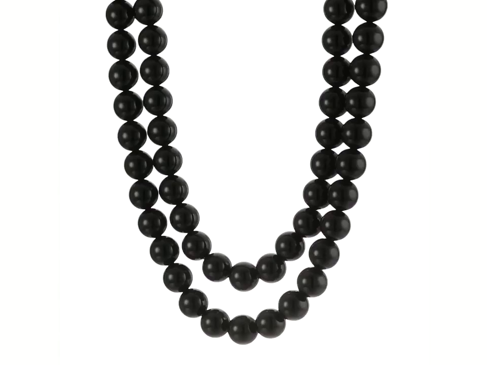 Onyx Round Bead Two-Row Sterling Silver Clasp Strand Necklace