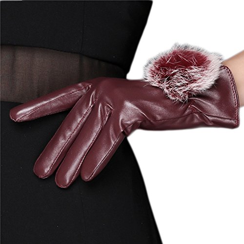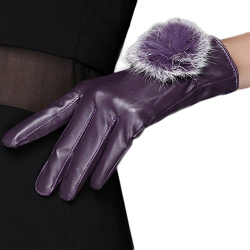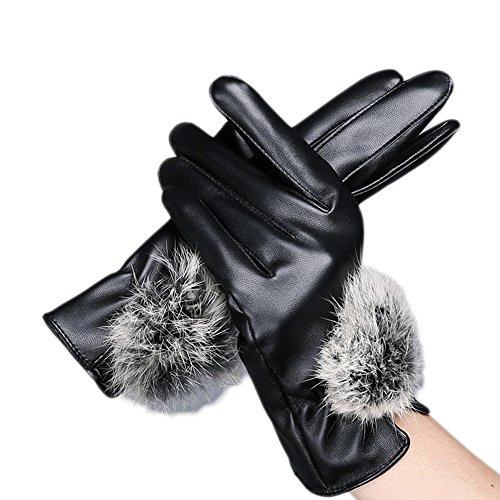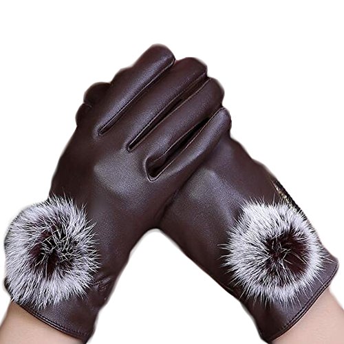 (Fashfur)/Accessories/Cold Weather Accessories/DIRECT FROM USA/Fashfur Women Winter Leather Touchscreen Texting Gloves Super Soft Lining Imitation Rabbit Fur Ball