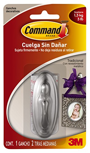 3m Command Traditional Medium Hook Medium Brushed Nickel