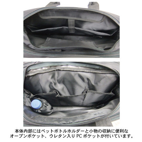 本体内部にオープンポケット3つ、ペットボトルホルダー