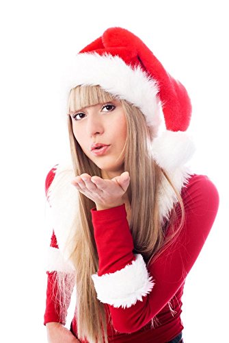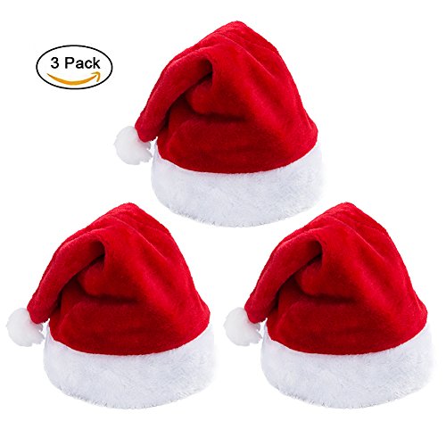 3 Pieces Santa Hat Red Plush for Adult Christmas Santa Claus' Cap