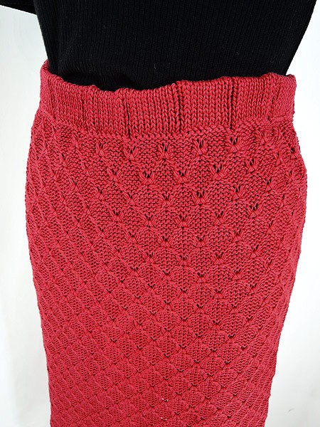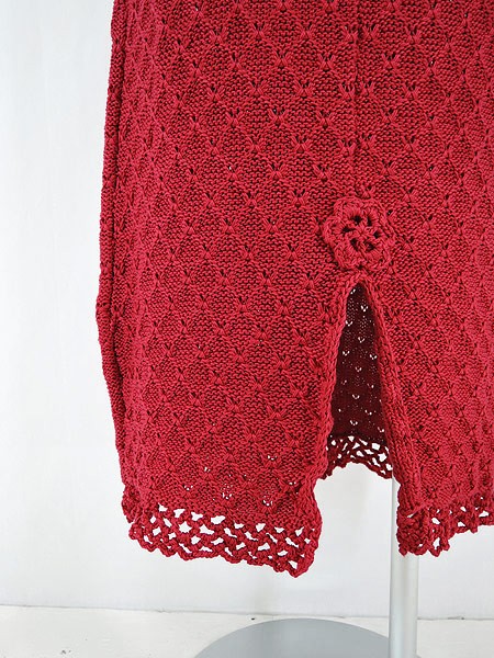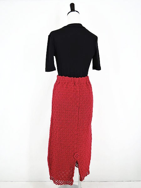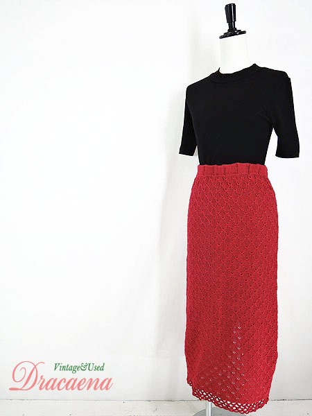 Ladies ブランド カラー赤 メール便不可 コンディション★★★ 素材アクリルと思われます 表記サイズ 実寸サイズ 着丈 80 cm ウエスト 23 インチ( 58 cm) 裾幅 43 cm スリット 20 cm ※ウエスト・ヒップ以外は平置き採寸