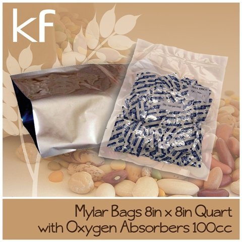 (100) Mylar Bags 4mil 8"x8" Quart Size + (100) 100cc Oxygen Absorbers for Long Term Emergency Food Storage Combo