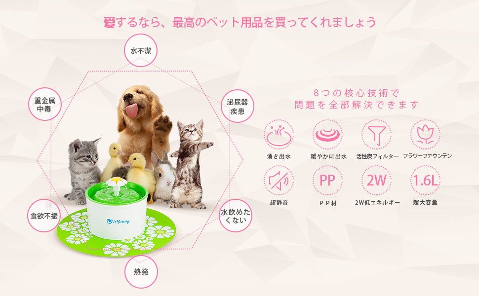 isYoung お留守番のワンちゃん・ねこちゃんにピッタリの循環式 自動給水器