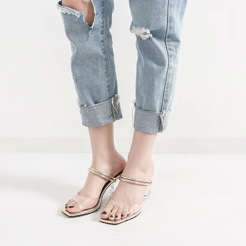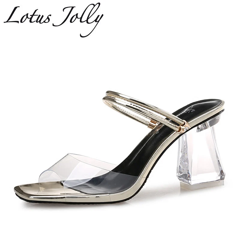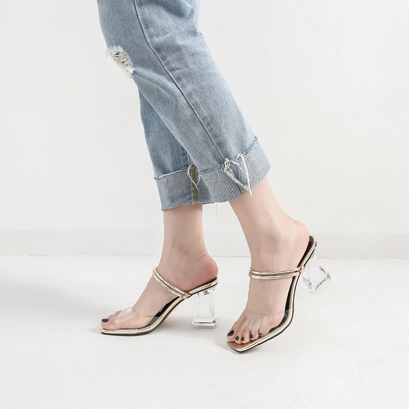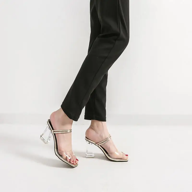 Women Sandals Crystal Summer Slippers:Slides High Heels Sexy Clear Transparent