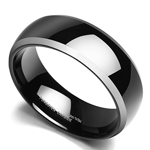King Will Unisex 8mm Tungsten Ring Black Domed High Polished Classic Wedding Engagement Band Two Tone 11.5