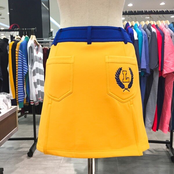 쨍한 옐로우와 에메랄드 색 치마바지입니다