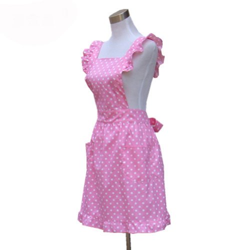 - Title : Hyzrz Hot Lovely Girls Red Dot Kitchen Canvas Restaurant Cake Apron for Women Chef Bib (Pink)