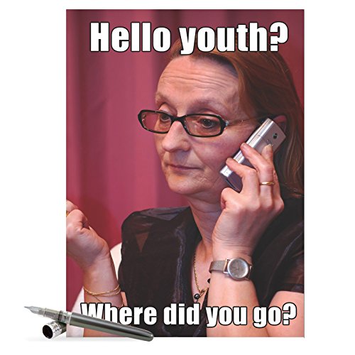 J5430 Jumbo Funny Birthday Card: Hello Youth With Envelope (Extra Large Version: 8.5'' x 11'')
