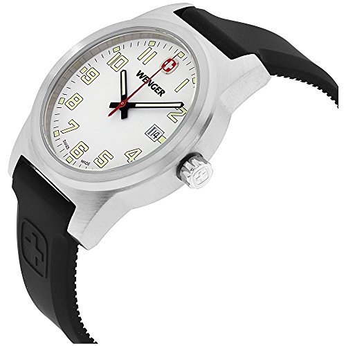 Wenger Swiss mens Field Classic Watch Large 42mm White Dial Date Silicone Rubber Sports Strap 01.0441.117