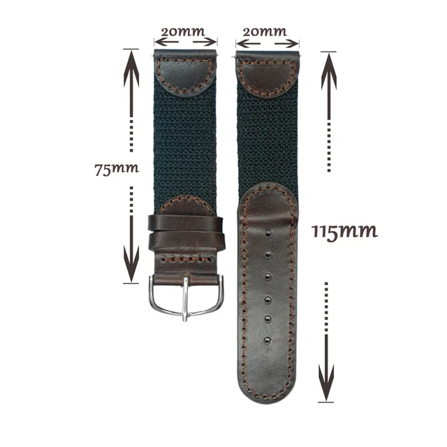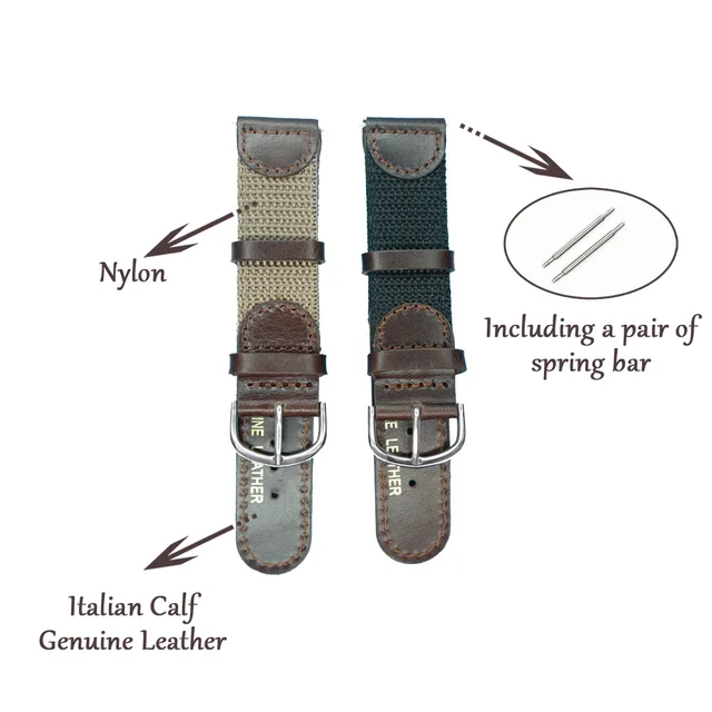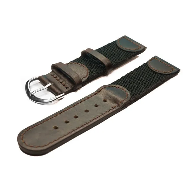 기름 이탈리아어 정품 가죽 시계 밴드 20mm 시계 끈 짙은 갈색 나일론 손목 시계 stianless 스틸 버클 시계 남성