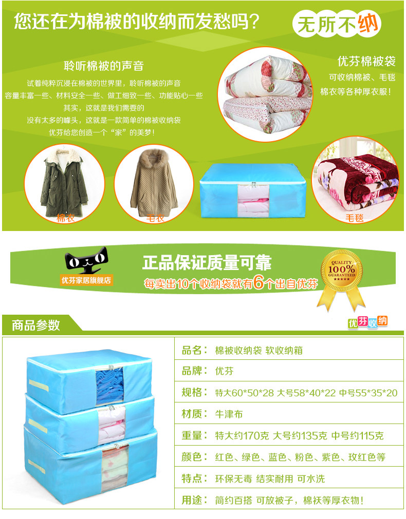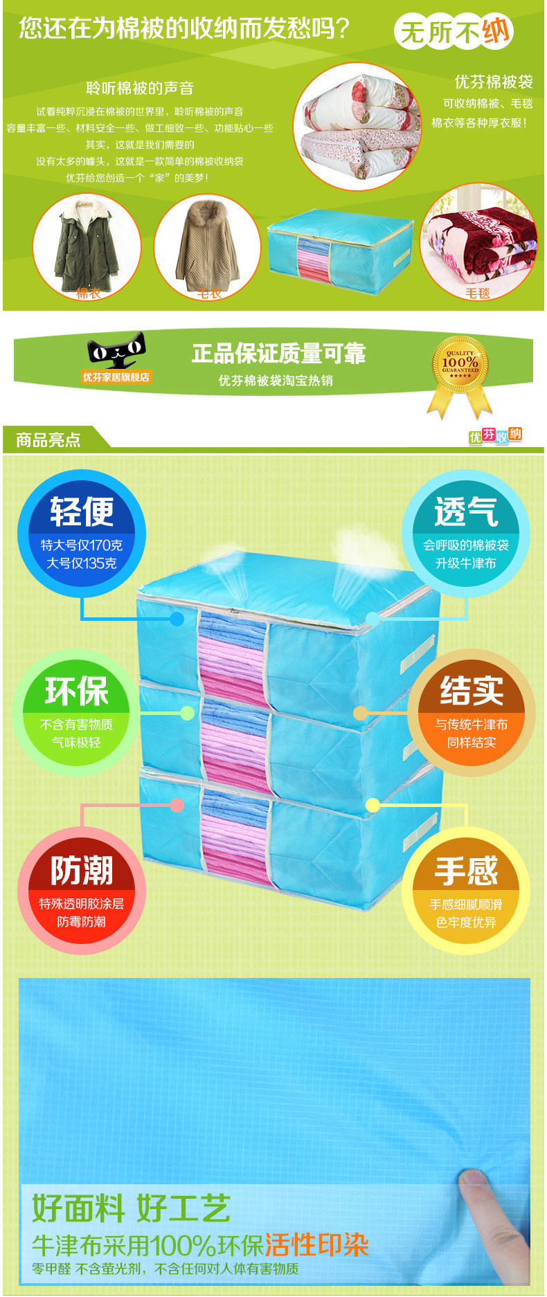 优芬牛津布棉被收纳袋 可水洗特大号衣物整理袋防尘袋 软收纳箱