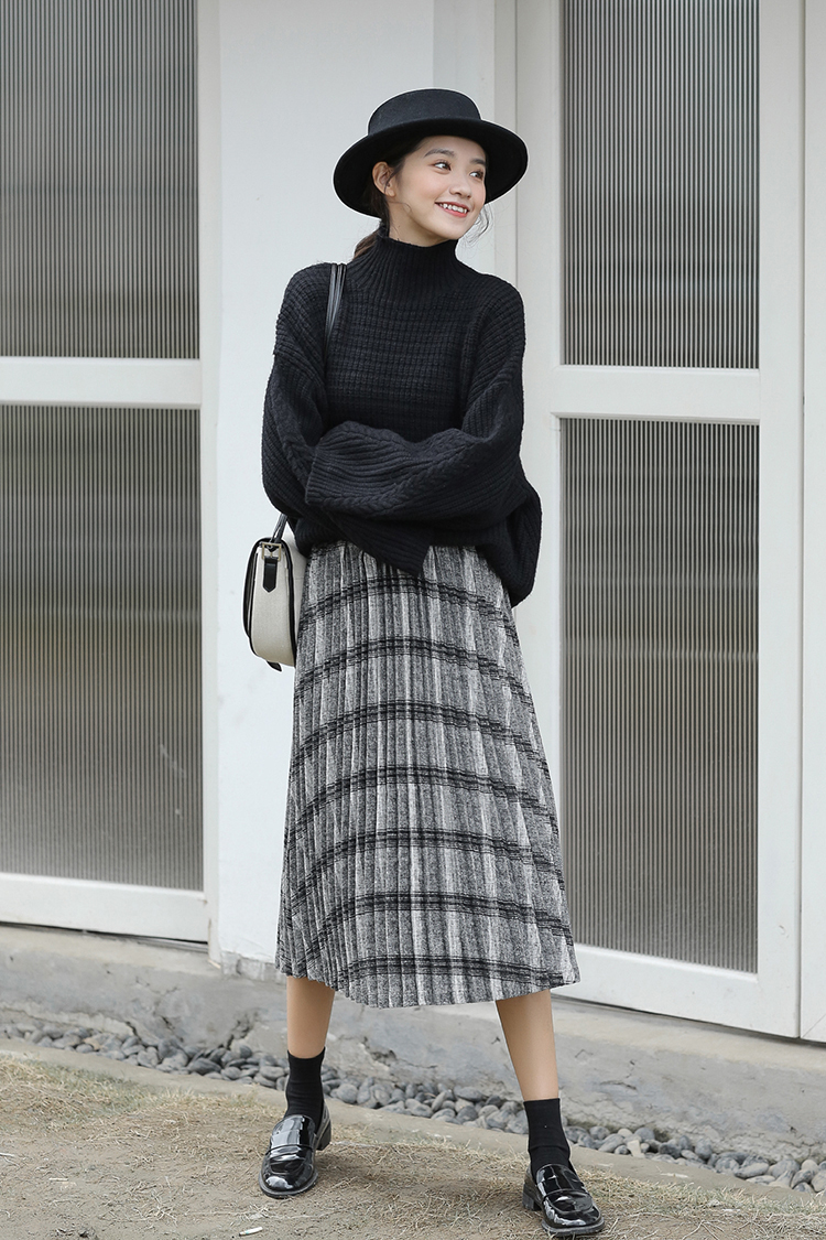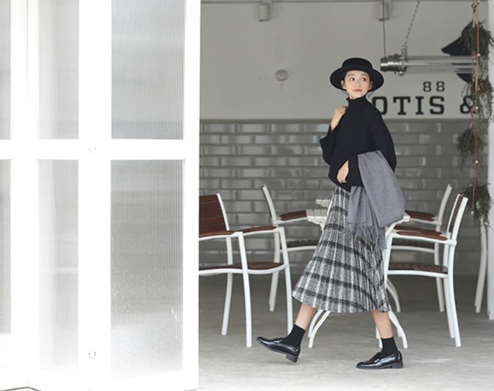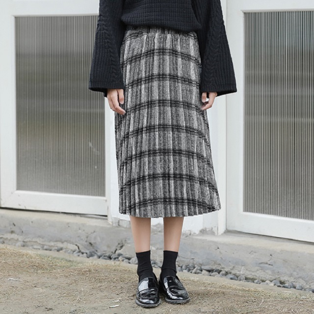 トレンドのチェック柄が大人可愛い膝下丈スカート☆