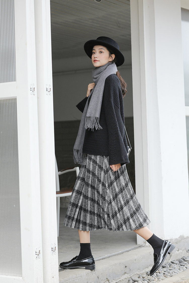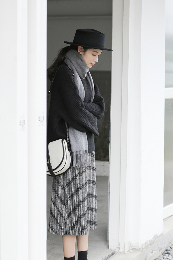 ゆったりとしたニットと合わせて女の子らしく着こなすのが◎
