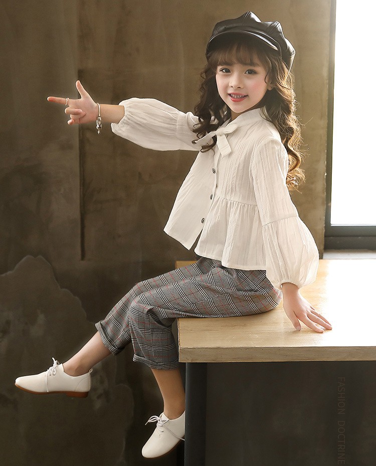 【製品仕様】■商品名子供服 セットアップ 女の子 秋冬 長袖 韓国子供服 上下セット 長袖シャツ 白 ブラウス ロングパンツ おしゃれ キッズ■商品説明・白いシャツとチェックパンツのお洒落なセットアップ。・シャツもパンツも、各々使い勝手抜群。買って間違いなしの一品。■サイズ100cm 110cm 120cm 130cm 140cm 150cm■素材 コットンほか■色#1ホワイト×グレー「検索キーワード」長袖セットアップ キッズ 女の子 ガールズ 秋 冬 チェック柄 白ブラウス シャツ リボン タイ ロングパンツ チェックパンツ 長ズボン クロップドパンツ トップス ボトムス 上下セット 2点セット