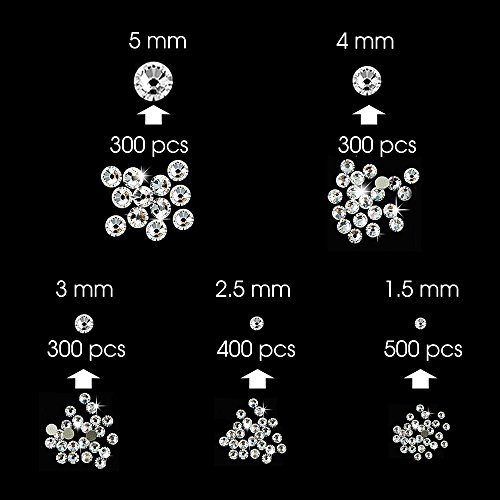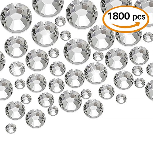 WXJ13 1800 Pieces Flatback Rhinestones Glass Round Brilliant , 5 Sizes (1.5 mm, 2.5 mm, 3 mm, 4 mm, 5 mm)
