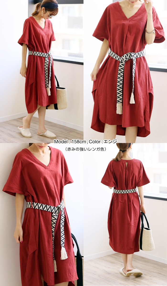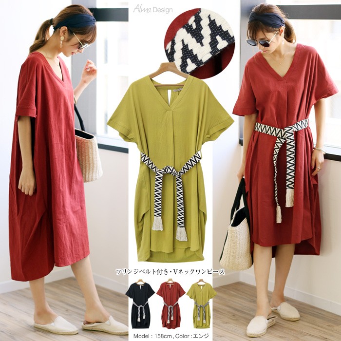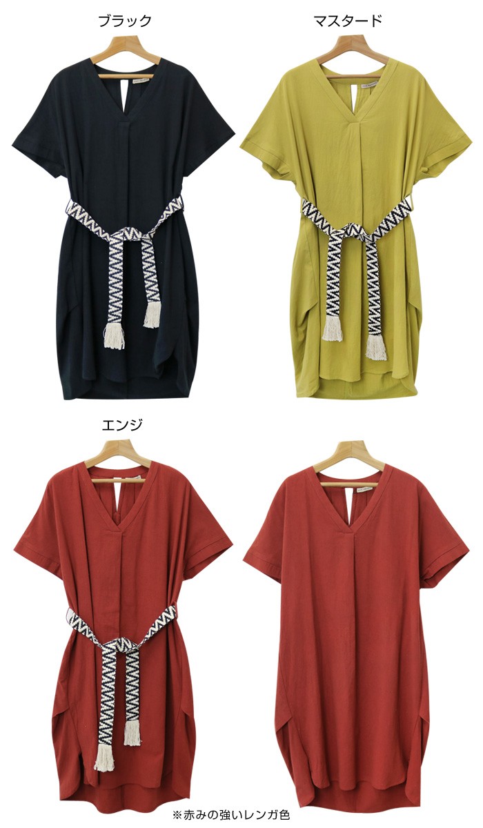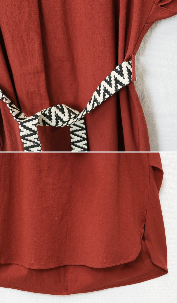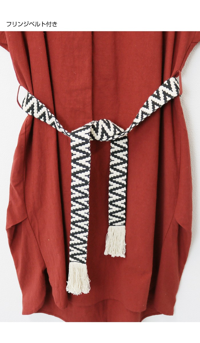 サイドにベルトループが付いており付属のフリンジベルトを巻くor巻かない…2wayで着られるデザイン!胸元はゆったり開いたVネック。サイドタック入りでニュアンスのある着こなしにみせてくれるアイテムです♪MODEL:身長158cmMサイズ
