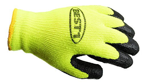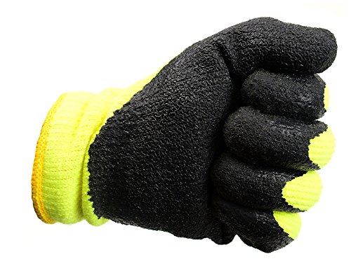 BEST1 WHVLM-XL Winter Insulated Rubber Latex Coated Work Gloves, Crinkle Pattern, 3 Pairs/ Pack (Extra Large, Lime)