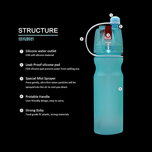 ARAZADR Water Misting Sport Bottle Silicone Spray Kettle PC -20oz