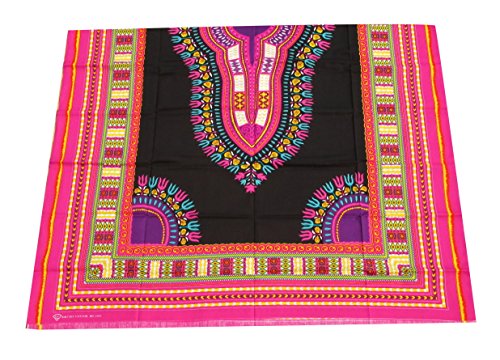 RaanPahMuang African Dashiki Black Cotton Fabric Suitable for 1 Shirt Design, Multicolour Pink