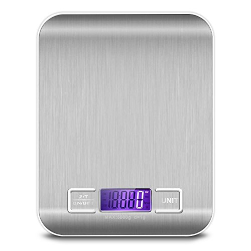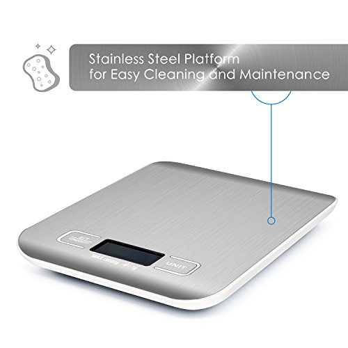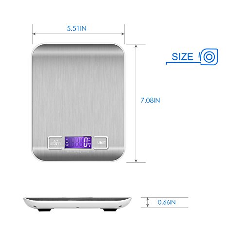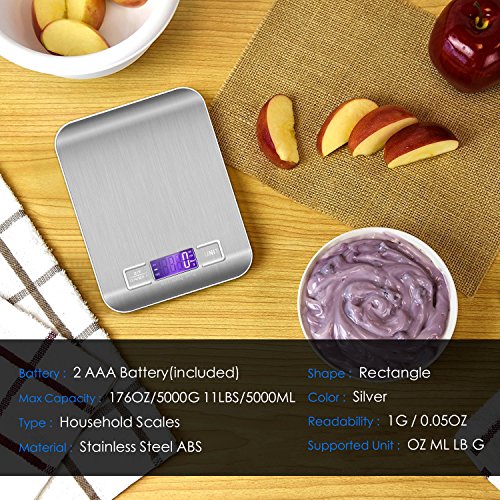 Digital Kitchen Scale Food Scale, Simple Lightweight Multifunction, 11lb 5kg, Stainless Steel - Silver (Batteries Included)