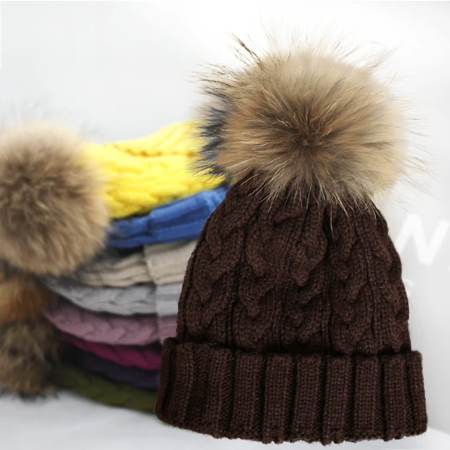 | [해외]케이블 뜨개질 여성 너구리 모피 치어 리딩 따뜻한 겨울 다채로운 힙합 남성 캡 |