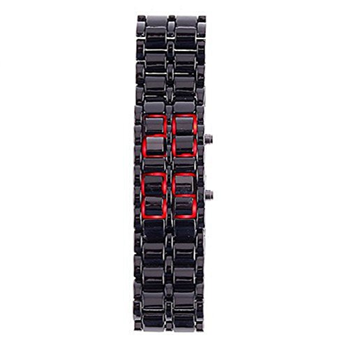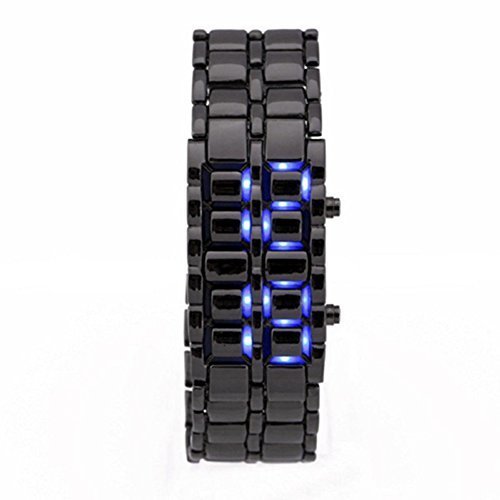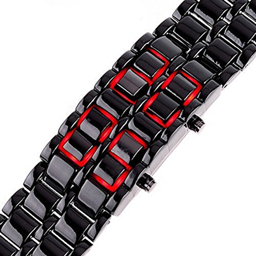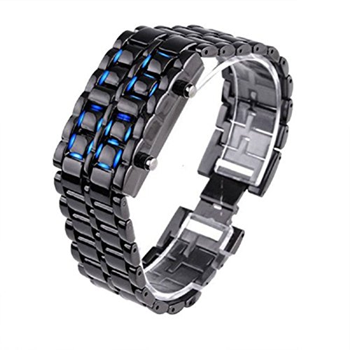 KitMax (TM) Pack of 2 Pcs Novelty Unisex Lava Style Black Stainless Steel Automatic LED Digital Army Military Sport Bracelet Wrist Watch (One Blue One Red)
