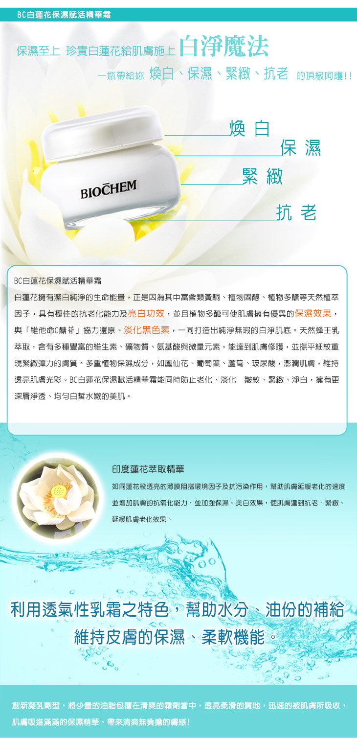 The brightened lotus film blocks environmental pollution. Refresh texture is instantly absorbed by the skin.