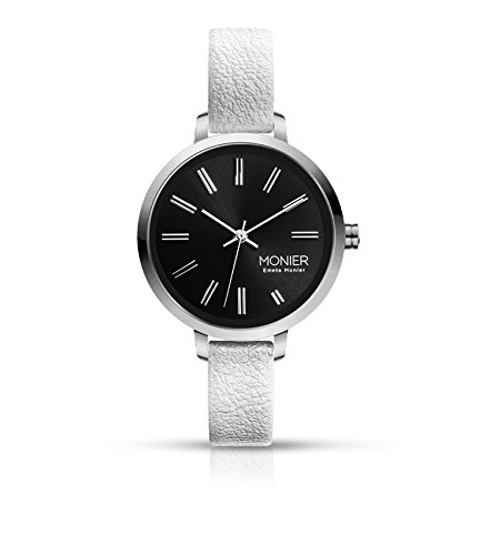 Emelia Monier D Portrait Silver Tone Women's Watch with White Leather Strap EML003-01WT