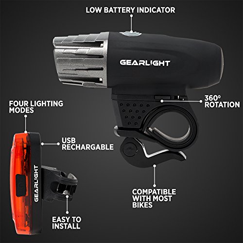 GearLight S300 USB Rechargeable LED Bicycle Light Set