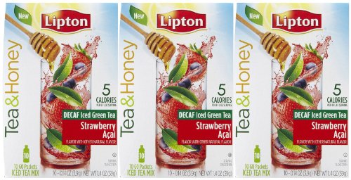 -. Feature : Lipton To Go Stix, Decaf Iced Green Tea & Honey Mix, Strawberry Acai, 10 ct, 3 pk