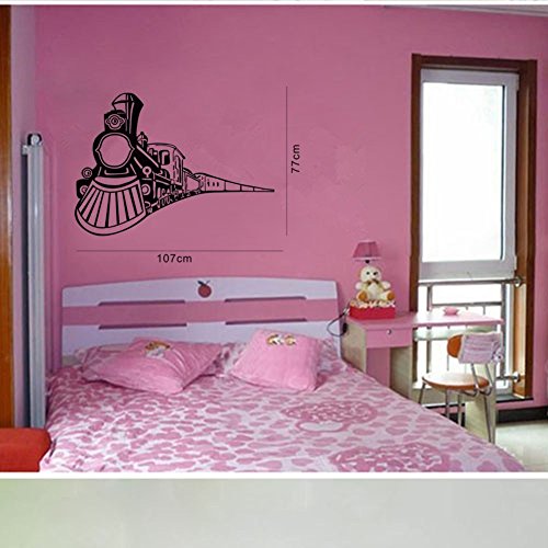 -. Title : Vehicle Train Wall Stickers Decals - Train Is Coming Wall Decor Art Vinyl Removable Black Graphic Steam Train Silhouette Home Wall Mural for Kids Teen Boys Girls Children Bedroom Living Room Baby Nursery Olivia