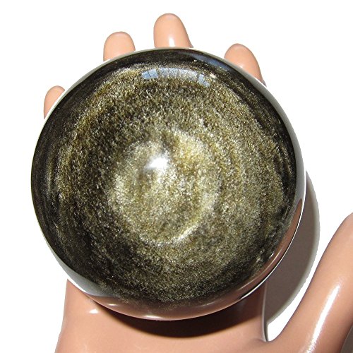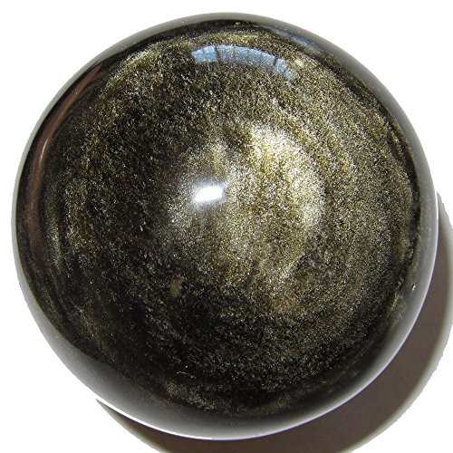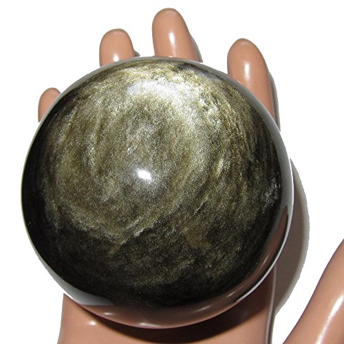 Your sphere is made from obsidian, which is volcanic glass. It appears black in normal lighting, with some white dimples and snowflake markings natural to obsidian. When placed in direct sunlight or very bright lighting, the sphere reveals wonderful gold sheen sparkles. One of a kind protective sphere hand picked by Satin Crystals for you. Receive this exact stone pictured when you order from Satin Crystals.