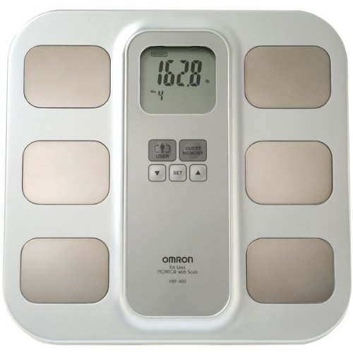 -. Brand : Omron -. Color : Silver -. EAN : 0601000564280 -. Feature : Accurately measures body fat percentage and body mass index (BMI) using proven bioelectrical impedance method / Large LCD display allows for easy reading and displays weight up to 33 pounds / Stores up to 4 individual profile settings so the whole family can track their progress / Measures body weight and classifies it as underweight, normal or overweight so you know where you stand / Automatically turns on when you step on it, automatically shuts off afterward to save energy -. Label : Omron Healthcare -. Manufacturer : Omron Healthcare -. MPN : HBF-400 -. PackageQuantity : 1 -. PartNumber : HBF-400 -. ProductGroup : Health and Beauty -. ProductTypeName : PERSONAL_CARE_APPLIANCE -. Publisher : Omron Healthcare -. Studio : Omron Healthcare -. Title : Omron HBF-400 Full-Body Sensor Body Composition Monitor with Scale -. UPC : 601000564280