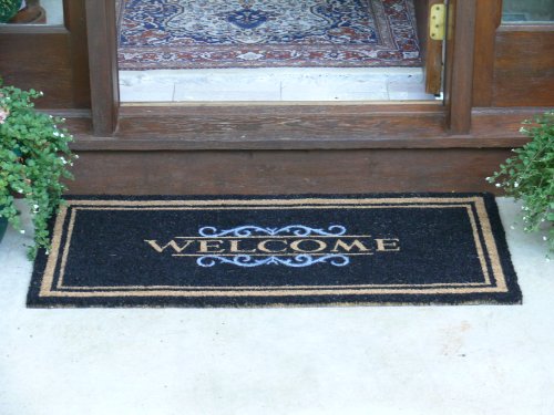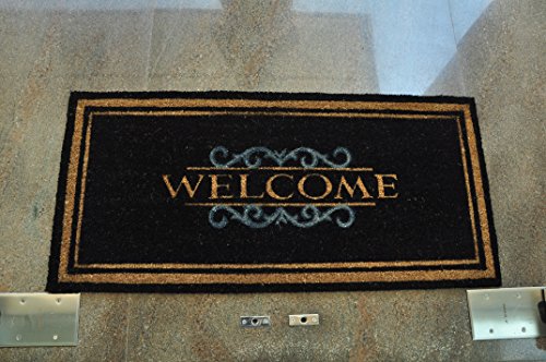 A 22" X 47" Coirmat with a Elegant Welcome. Our cocomats are made only with the best coconut fibers imported from India. Ink for the design is imprinted deep within the coco fibers of the mat to ensure a long lasting and sharp design. Our doormats are a great, environment friendly way to make the most of your entrance.Feature