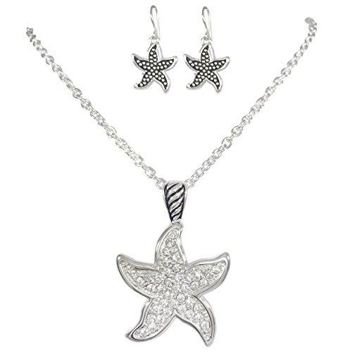 -. Title : Silver Tone Rhinestone Designer Look Necklace and Earrings Set