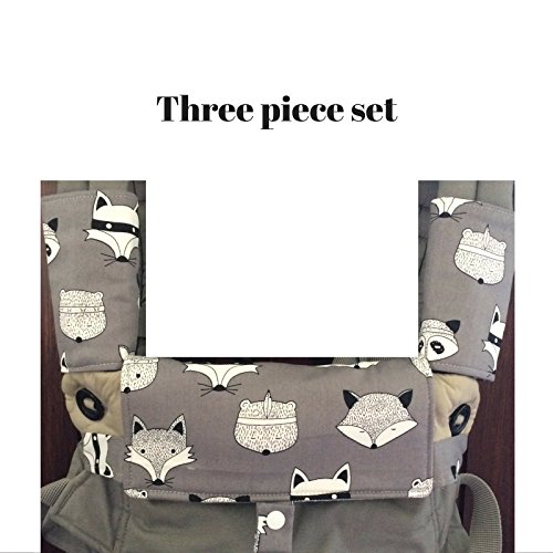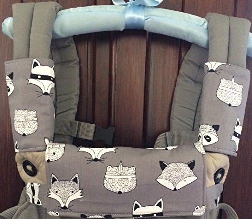 -. Title : Pawda Baby Ergo 360 teething pads, drool pads, bib, cover in grey with foxes for Ergo, Manduca, Lillebaby