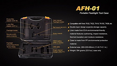 Fenix Portable Hunting light kit case AFH-01 for TK32, TK22, TK16, TK15C & TK09 with EdisonBright battery carry case (Flashlight Not included)