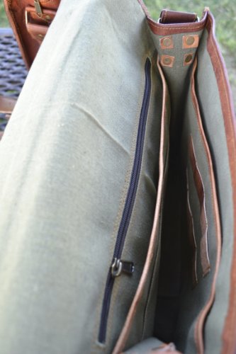 -. Binding : Electronics -. Brand : Komal's Passion Leather -. Color : Brown -. EAN : 0639725414160 -. Feature : Size 18" width x 13" height x 6" depth / MANY BUYERS COMPLAINED OF THE BAD QUALITY because they selected these offers. In order to get a top quality bag , PLEASE BE CAREFUL WHILE MAKING YOUR PURCHASE . PLEASE CHECK THE BRAND NAME AND SELLER NAME ( PASSION LEATHER ) before buying the product. / 100% Genuine Leather, We use Olive green heavy duty canvas for all our bags and branded YKK zippers. / Can be used as briefcase or cross body messenger shoulder bag / Big Front pocket for I Pad's, notebooks, documents, small files etc, 2 small inner compartments and 1 big inner compartment for carrying larger files, laptop's etc. 2 inner zipper compartments for important documents/paperwork etc, Stitched Pen Holders -. Label : Passion Leather -. Manufacturer : Passion Leather -. MPN : M2-XJCV-INZN -. PartNumber : M2-XJCV-INZN -. ProductGroup : PC Accessory -. ProductTypeName : CARRYING_CASE_OR_BAG -. Publisher : Passion Leather -. Size : 18Wx13Hx6D -. Studio : Passion Leather -. Title : Komal's Passion Leather 18 Inch Sturdy Messenger Bag / Shoulder Bag/ Briefcase -. UPC : 639725414160
