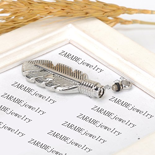ZARABE Cremation Jewelry Heart in Feather Urn Necklace Memorial Ash Keepsake Locket Pendant