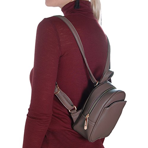 Studio : Humble Chic NY Publisher : Humble Chic NY Product Description Take it back to the classics with this super compact mini backpack featuring a luxuriously smooth exterior made from softly pebbled vegan leather. The perfect size purse to hold all of your day-to-night essentials, this small shoulder bag features a lightly structured interior with enough room for your cell-phone, a thin wallet, keys, a small e-Reader tablet, and makeup staples. It is constructed in a minimalist shape with long, adjustable shoulder straps that can be converted for multiple carrying options. Wear it with two straps as a back-pack, or adjust it into a one-strap messenger bag, cross-body pocketbook, sling rucksack bag, or tiny shoulder handbag. Lightweight and sleek, this vegan leather backpack purse is perfect for a festival, concert, or off-duty days. Finished with a rounded top-zip closure, fabric lined interior, single top handle, gold-tone hardware, and a front exterior pocket with magnetic closure. Dimensions: 8" x 7" x 3.5". 0