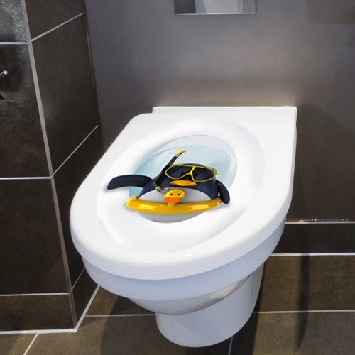 Wandkings Toilet Lid Decal "Penguin with Lifesaver"- 11.8 x 15.7 inch