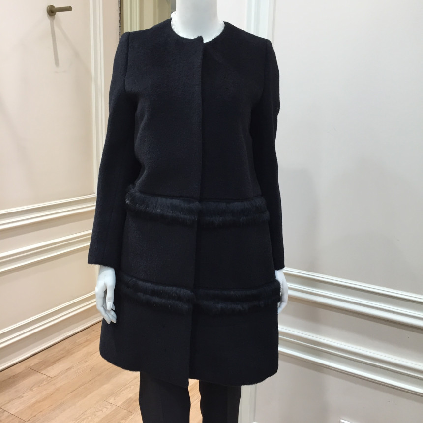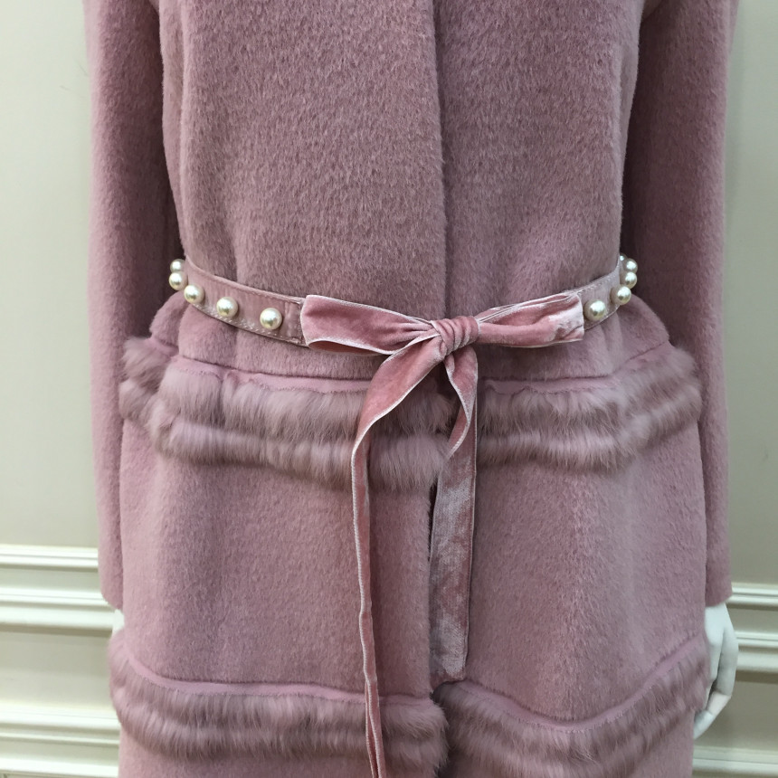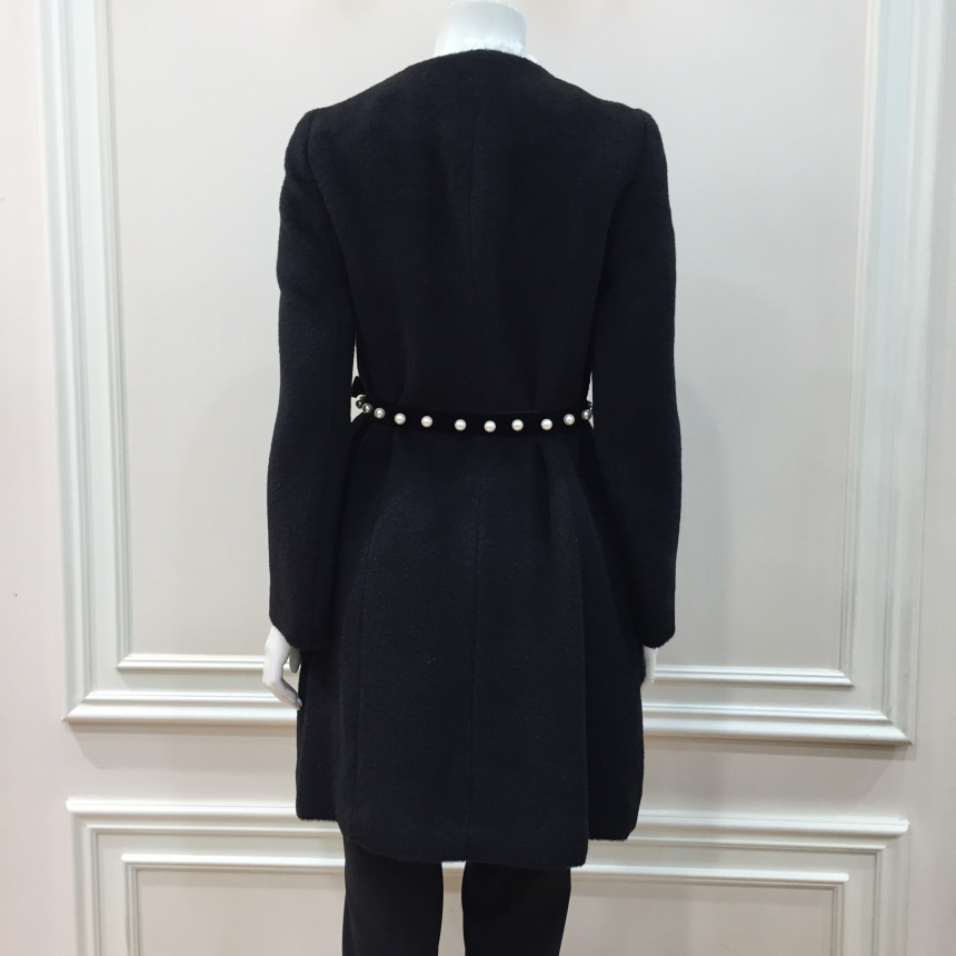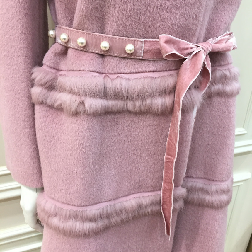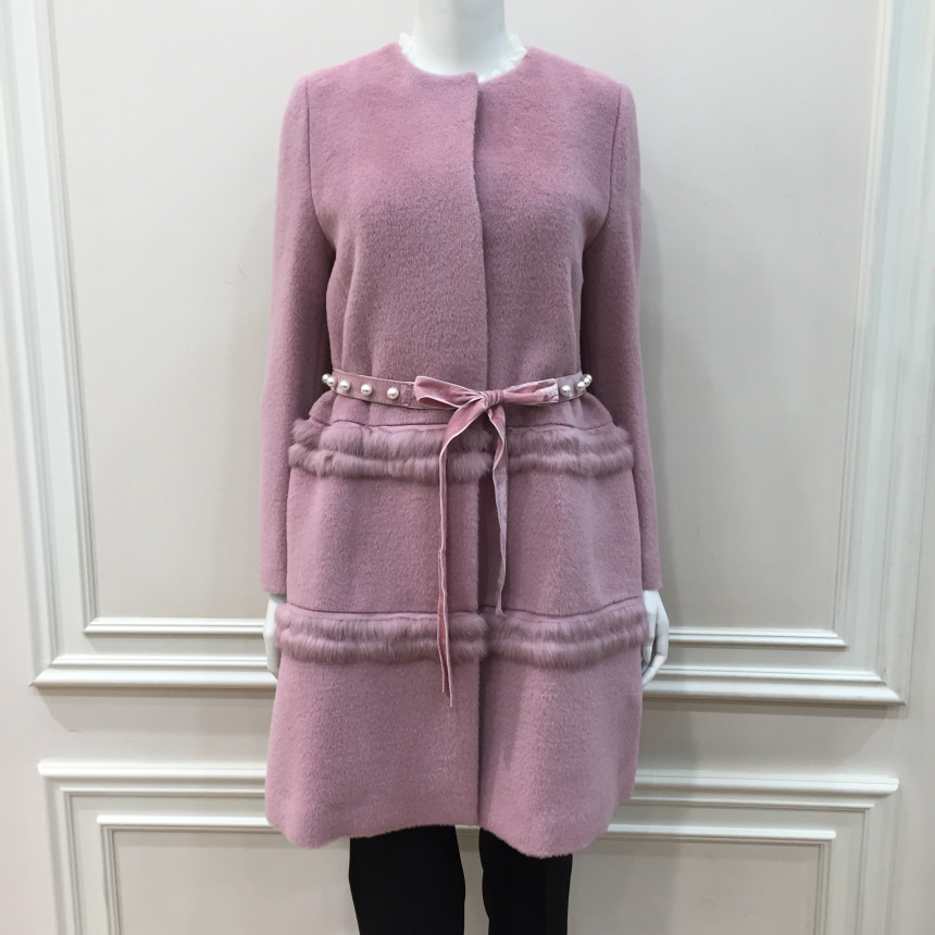 코트 몸판에 퍼 트리밍으로 포인트를 준 A라인 실루엣의 코트입니다.탈착 가능한 진주장식 허리벨트로 허리라인을 더욱 슬림하게 연출할 수 있는 제품입니다.앞중심을 스냅단추로 여미는 형식으로 겉으로는 보이지 않아 깔끔한 스타일입니다.