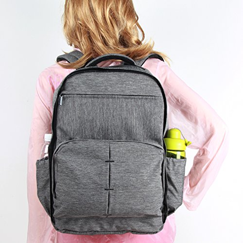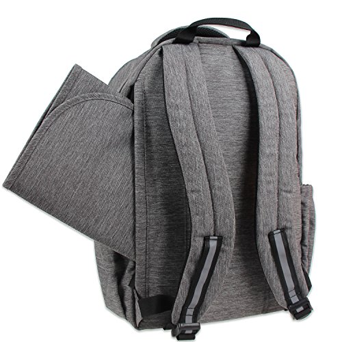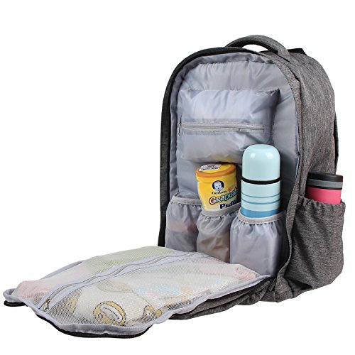 MULTIPLE POCKETS: laptop/tablet pocket, 3 bottle holders(1 insulated), 2 side pockets, zippered pocket, baby wipes pocket, pen/card/ tableware slots, key clips, clothes pocket and more. 2 large compartments with clamshell opening keep items easy visible and access. The back hidden zipper pocket for the changing pad included(22.8 inches x 13.5 inches).