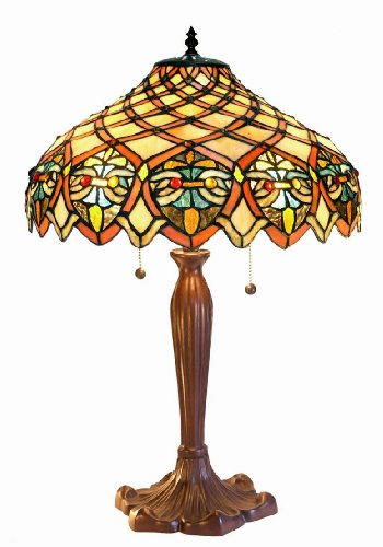 -. Feature : Additional limited-time savings reflected in current P.R.Ice / Crisscrossing design with decorative accents / Base crafted from richly textured white zinc metal / Shade made from more than 200 pieces of art glass / Traditional style in yellow, green, and red